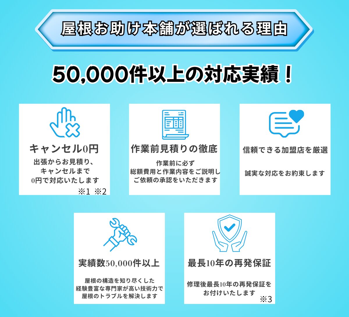 ※3 施工内容によっては再発保証がつかない場合がございます